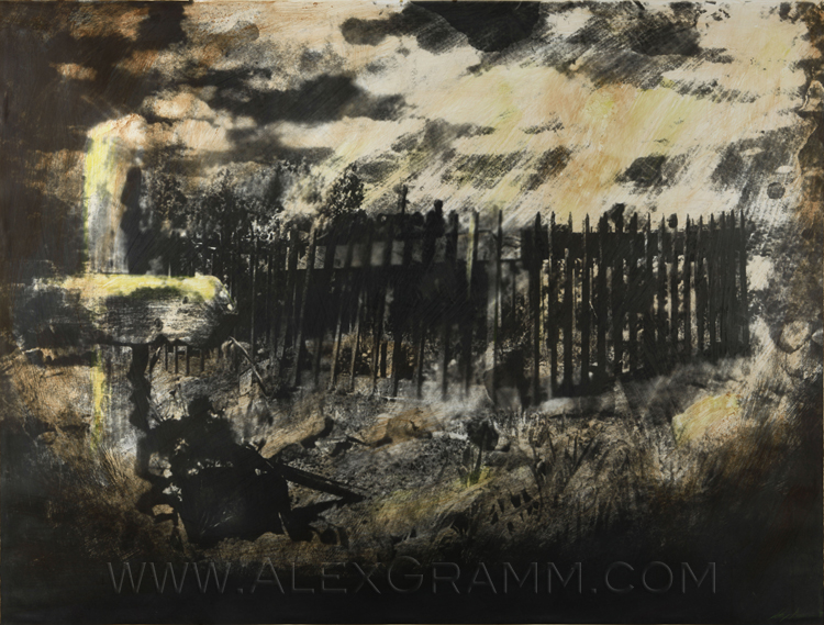 REMEMBRANCE , Mixed media on photographic paper, 65″ X 49.5″