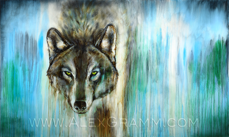 SPIRIT WOLF , Mixed media on stretched canvas, 72″ X 120″